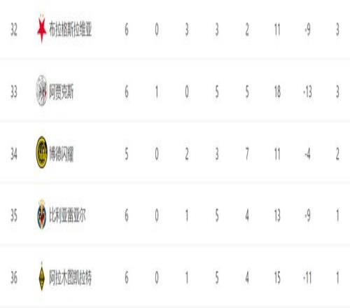 取胜之后,阿贾克斯终于结束了开局5连败战绩,拿下首场胜利积3分,积分榜排名升至第33位,倒数第一的名次给了阿拉木图凯拉特。
